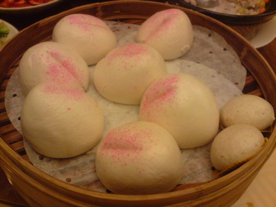 不知道為什麼要吃壽桃, 但是這壽桃大的誇張, 內部的紅豆泥裡面還包著鹹蛋黃… 甜中帶鹹, 很妙! 有人打趣的說, 壽桃人人要吃啊! J卻冷冷的問了「為什麼我要吃?」 我想… 我們公司真的來了個美國人…