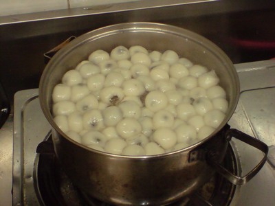一切準備完成前, 想說可以煮湯圓來加入剛剛做好的湯裡面… 沒想到湯圓滾開時, 阿德發現異狀~