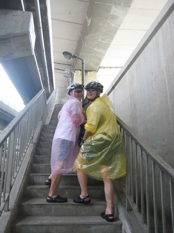 天公如果會作美的話, 就沒有所謂天公不作美這樣的諺語了~ 台北依然雨濛濛., 雨不是很大, 但不穿雨衣依舊會淋濕… 不管悶熱, 還是得穿上雨衣