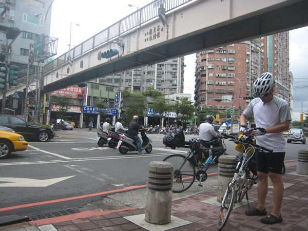 第一天的漁港目標就是永安漁港, 雖然已經到了桃園, 但還是被錯綜複雜的街道所迷惑… 儘管我們有老蔡手機的GPS, 克來德斯基的「騎單車環島」, 我們最相信的莫過於…