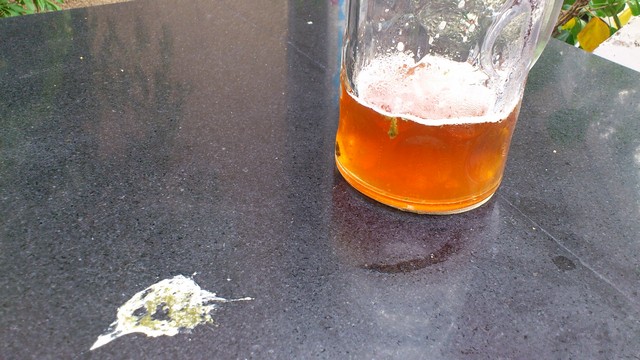 喝到剩兩口, 準備要一鼓作氣喝完去吃飯, 忽然間就啵啵兩聲… 一陀不偏不倚的進了杯子… 我望著杯子, 想著我跟鳥屎也太有緣了…