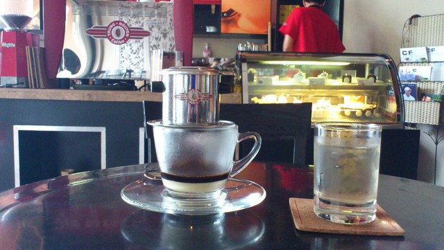 經過一家很有FU的咖啡店, 寫著No.1的咖啡, 並不是克來德口中的Highlands(越南星巴客), 但我喜歡這種, 點了一杯最貴的滴了七分鐘的咖啡, 8萬, 咖啡味很香濃, 但底下煉乳真的太甜了
