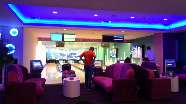 到都到了, 就進去看看, 克來德說這娛樂不少, 一上百貨公司的最高層, 這保齡球館也飛遜了吧