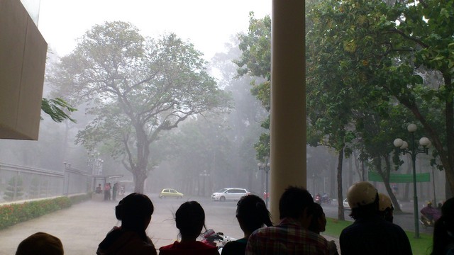 克來德說越南的雨來的快來的大, 我一走到統一宮就做風颱了…
