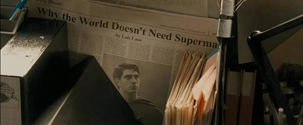 露易絲在超人為拯救地球而受傷昏迷後, 在鍵盤上敲下這個標題, 似乎要反駁自己在普立茲得獎的文章 Why the world doesn’t need Superman