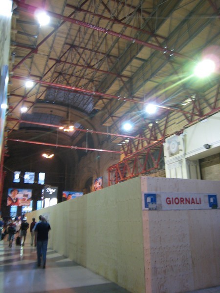 中央車站的大廳在維修… 這是我們第一個看到義大利在維修的古蹟… 後來在每個地方的所有古蹟… 幾乎都被包紮起來維修中… (在翡冷翠遇到喬治跟他說這個奇觀的時候, 他說他在七月份來也是一樣, 他朋友十年前來也是一樣)