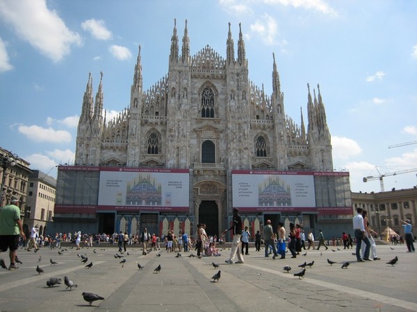 不過正如前面提到的, 沒錯~ 米蘭大教堂又被包起來維修了… 這樣一來除了照不到全景, 對它的壯觀其實大大扣分~ 視覺效果沒有巴黎聖母院來的震撼~