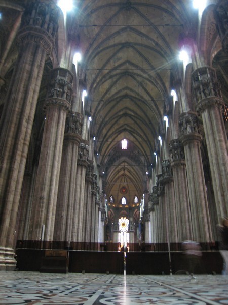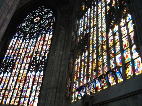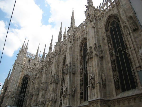 雖然兩者都是哥德式建築, 可是就外觀而言, 兩種建築的風格迥異, 實在看不出來同質性, 唯一相同的地方在於滿是雕刻的外觀吧~ 不過要怎麼說才能表達外觀的差別呢? 我想這樣的比喻會更清楚… 巴黎聖母院看起來像是厚實的海綿蛋糕; 米蘭大教堂則像是薄片的蘇打餅乾…