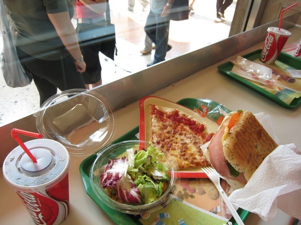 也在這裡, 第一次見識到義大利人站著吃喝的習慣… 當然, 這是速食餐廳, 所以有位子就可以坐… 但是其他餐廳來說, 站著和坐著的價錢是不一樣的, 而我們在米蘭的第一頓飯開始見到所謂的站式