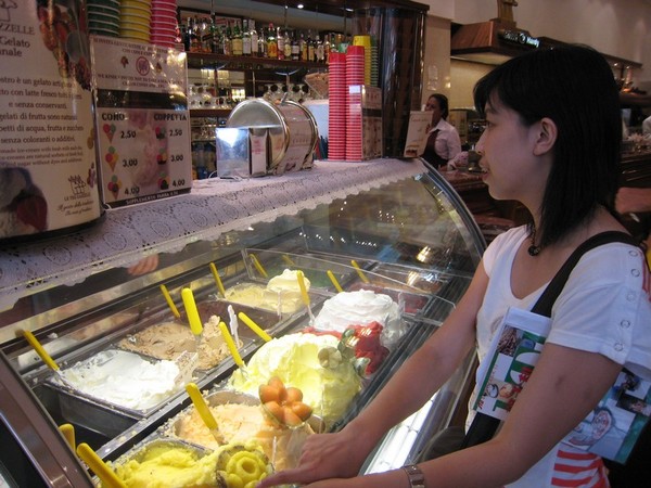 逛累了, 在經過一家冰淇淋店時, 想說義大利的冰特別有名, 就來試試看…