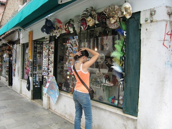 現在還算是鬧區的外圍而已, 已經開始看到賣面具的商店了~ 面具依大小和裝飾來分價格… 從5歐到50歐都有