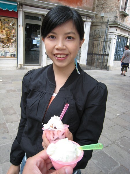 這裡的冰淇淋和在米蘭吃的不一樣… 是用香草當主要的冰淇淋, 在上面淋上我們要的口味~ 很普通的口感