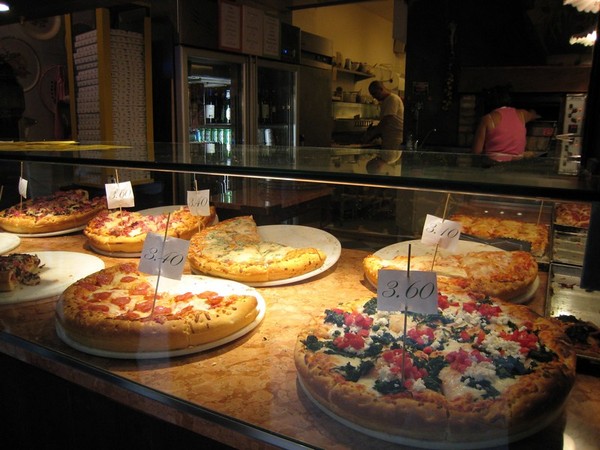 在百貨公司附近的小廣場有許多餐廳~ 但是我們走了一天的疲倦實在不想在外面多加逗留… 選了家PIZZA店外帶了三片PIZZA後就回旅店了