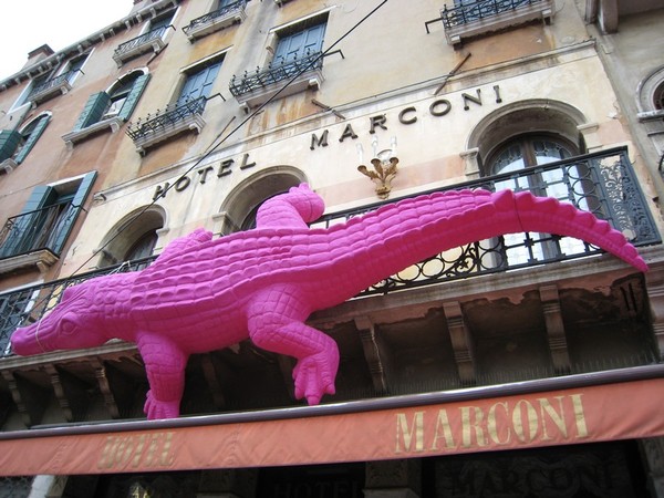 在河邊的一家旅店, 招牌上面有著大大的粉紅色鱷魚, 我們不懂這是什麼意思~ 只知道在這裡的一些商店都會掛上這個… 我猜測這大概是友誼商店聯盟之類的標誌吧… 有這種聯盟的會員卡, 到這裡會有折扣的優惠~ 當然只是我猜的…