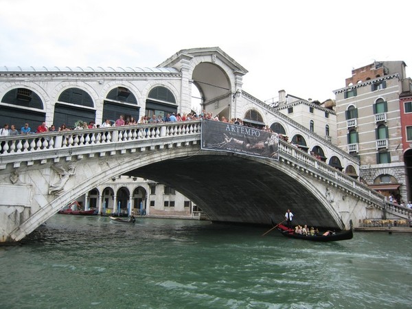 這座橋是威尼斯鼎鼎大名的雷雅托橋, Ponte di Rialto… 看橋上塞滿觀光客看著遠方水上景色, 這兒絕對是最佳景觀之一