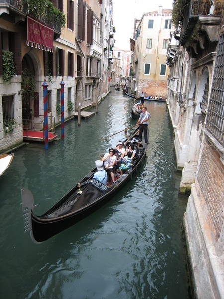 出現了~ 威尼斯最出名的莫過於此了… Gondola, 扛多拉… 這是由當地船夫將小型船隻裝飾後, 搭載旅客享受水都風情~ 據說船夫還會在路程上哼唱歌謠~ 價格當然不便宜… 約50分鐘的航程, 一艘船要價70~80歐不等