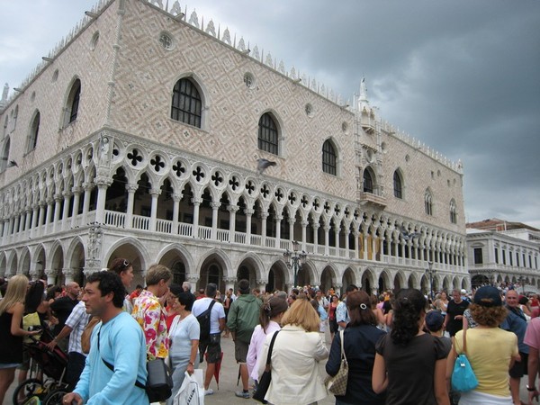 從聖馬可廣場連接到這個總督宮~ 滿滿都是人… 總督宮起源於9世紀的碉堡… 歷經幾個世紀的整修, 在16世紀蛻變成現在的模樣
