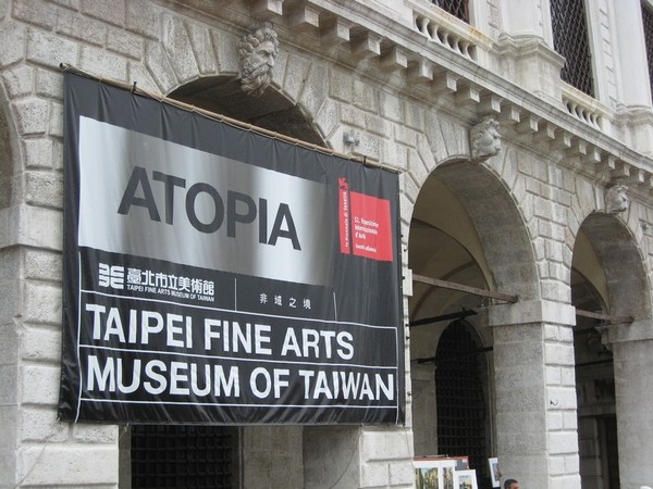 走到這裡天空開始一點一點的落下雨滴~ 我們赫然發現路邊出現了中文字~ 還是台北美術館呢~ 原來台北美術館和威尼斯這邊做了交流, 在這裡做了展覽