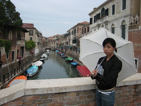 雨開始下了~ 說也奇怪… 原本擁擠的人潮就這樣消失在威尼斯的地表上… 瞬間清空耶~ 一場突來的雨, 還給了威尼斯清靜… 我想在這種氣氛下, 情人才能情定威尼斯吧~
